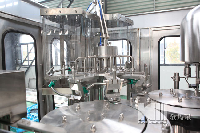 飲用水灌裝機集沖洗、灌裝、旋蓋于一體,全過程自動化運行,主要適用礦泉水、純凈水等不含氣飲料的沖瓶、灌裝、封口連續作業。本機大部分電器系統零件均采用國外優良產品,所有與液料接觸的地方均采用優質的不銹鋼材料制作,主關鍵部件采用數控機床精密加工, 整機光電檢測各部件的運行狀況,無瓶不灌裝,無瓶不送蓋,自動化程度高,操作簡易,具有耐磨、穩定、故障率低等特點,產品質量處于行業前列,是新老飲料投資者的選擇。
