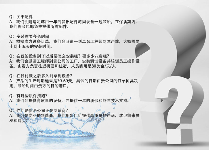 1.我們會從派我們廠里的工程師幫助安裝,調試和培訓。